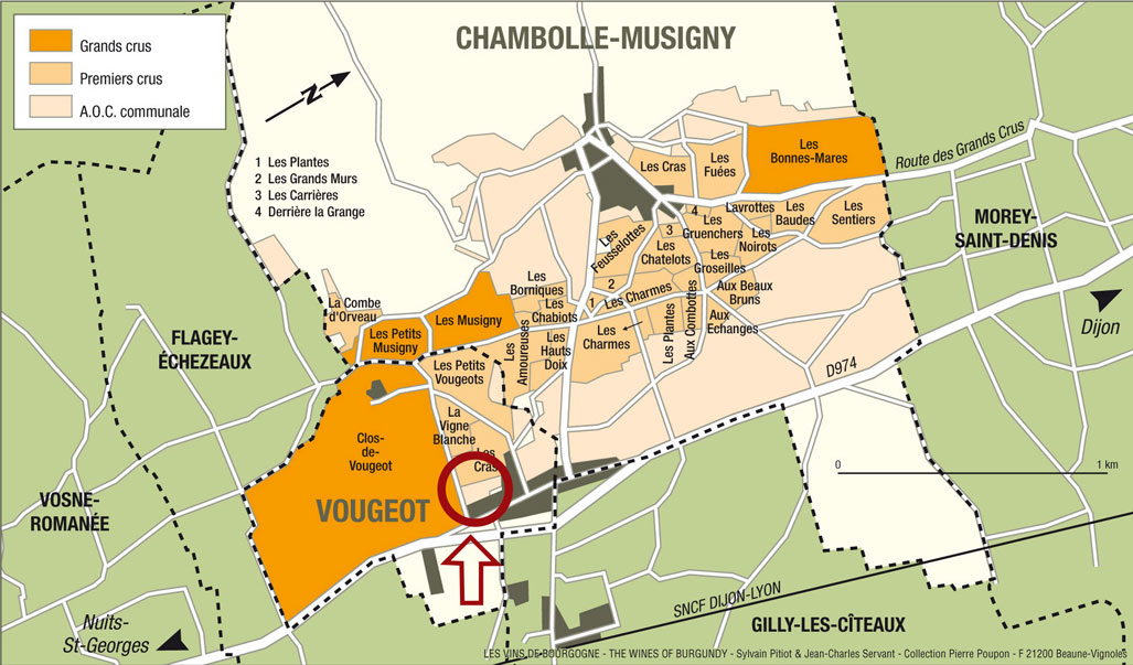 - La commune de Vougeot produit un Grand Cru : Le CLOS DE VOUGEOT.